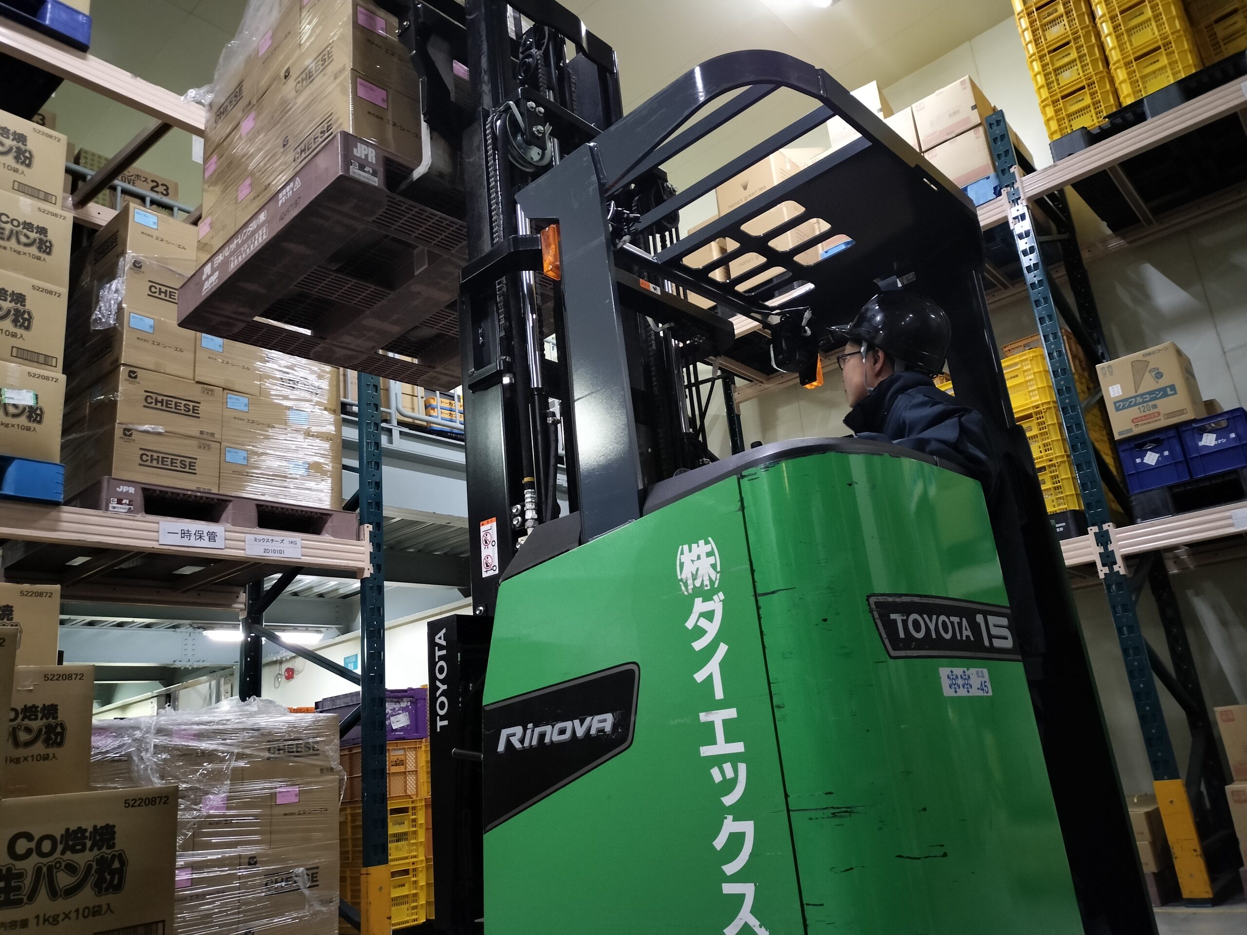 レストラン向け食品を冷蔵庫・冷凍庫内で、フォークリフトを使用して出し入れ・補充作業です。